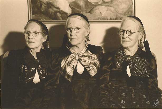 Gestakomur voru ætið mikið ánægjuefni. Ég á margar minningar frá þéttskipuðum stofum af talandi fólki. Spurt var frétta, málefni voru rædd. Áhugsverðast var ef ný viðhorf komu fram, þau voru tekin til sérstakrar meðferðar og rædd áfram eftir að gestir voru farnir. Þegar ég hugsa um gestakomur heima kemur mér í hug smáatvik, sem sýnir vel að ekki voru allir nákunnugir, sem komu í heimsókn. Hópur ferðafólks var kominn, sennilega á hestum því móðir mín fylgdi konunum upp á loft svo að þær gætu lagað sig til. Eitthvað hefir gestakoman verið óvænt því að móðir mín var ekki uppábúin, sem var þó venja hennar. Konur, sem gengu á íslenskum búningi, klæddu sig venjulega uppá þegar morgunverkum var lokið. Meðan móðir mín var að aðstoða konurnar, færa þeim vatn og annað, sem þær þörfunðust, segir ein þeirra við hana: "Ekki vildir þú víst vera svo væn að segja okkur hvor systranna niðri er húsmóðirin?" Móðir mín hafði gaman af þessu og lýsti fyrir okkur vandræðum þeirra þegar hún sagði til sín. |