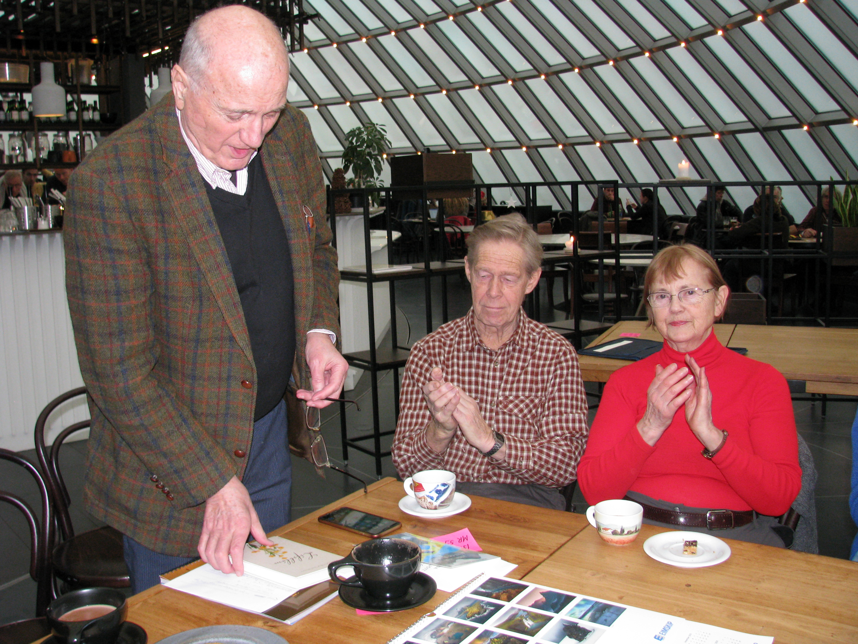 ![]() Á Litla ljóta andarunganum Aðalsteinn Eiríksson, Albína Thordarsen, Anna Björg Jónsdóttir, Ásta Sveinbjarnardóttir, Baldur Sigfússon, Guðmundur Þórarinsson, Haukur Filippusson, Hildur Bjarnadóttir, Kjartan Jóhannsson, Kristján Sigurjónsson, Kristmundur Halldórsson, Sigrún Andrésdóttir, Sigurður Þórðarson, Sigurlaug Guðmundsdóttir, Unnur Skúladóttir, Þóra Kristjánsdóttir og GÓP. Aðalsteinn flutti góða kveðju frá Eiði Guðnasyni sem floginn var til Noregs. Meðal margs sem barst í tal var grein Guðmundar í
