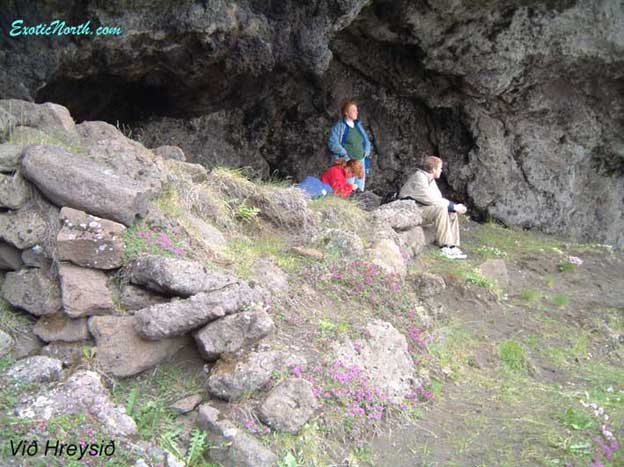 ![]() Hér er Hreysið fundið. Ekki fer á milli mála að hér hafa margar hendur unnið að. Í berginu eru víða göt - bæði til hliðar og einnig afar hátt uppi - rétt eins og tjaldað hafi verið fyrir með dúki. |