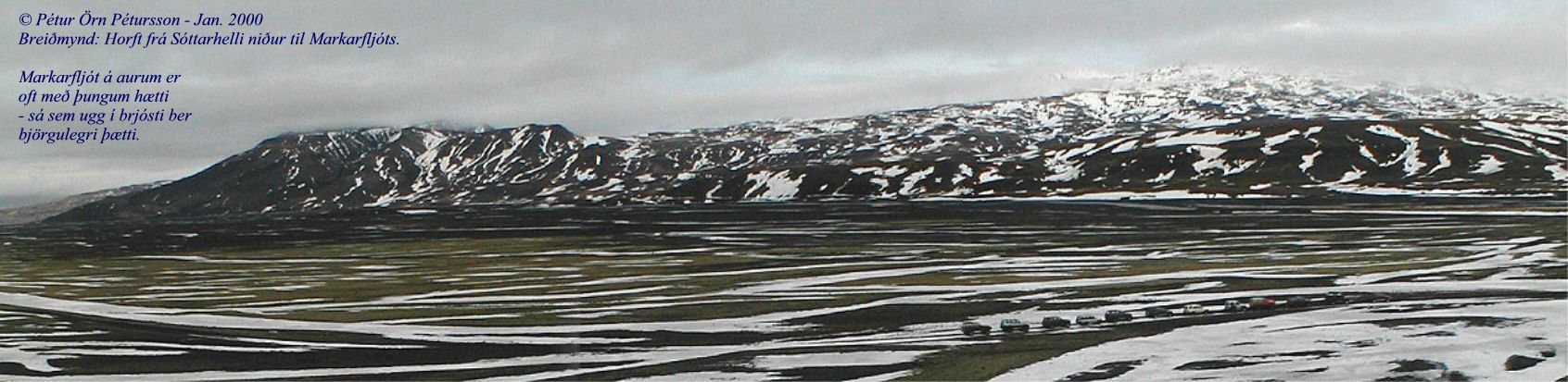 Enn var haldið til vatna og Ingi og Matti í fararbroddi. Milt vað fundu þeir á Krossá við Merkureggjar og senn vorum við öll á göngu upp í Sóttarhelli. Þar meðtókum við helgispjall þess staðar og þótti mörgum bæði all hrikalegt og nærstödd börn spurðu síðar hvort sögumaður teldi spjallið til sanninda. Varð þá fátt um svardaga. |
