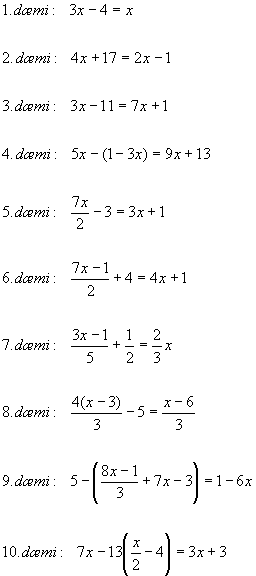 | Leystu jöfnurnar - reiknaðu gildið á óþekktu stærðinni x |
