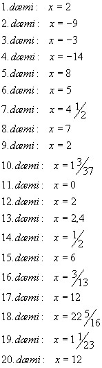 | Leystu jöfnurnar - reiknaðu gildið á óþekktu stærðinni x |