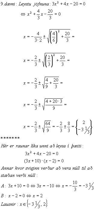 x2 - 2x - 3 = 0 með lausnunum x = -1 og x = 3 sem báðar eru