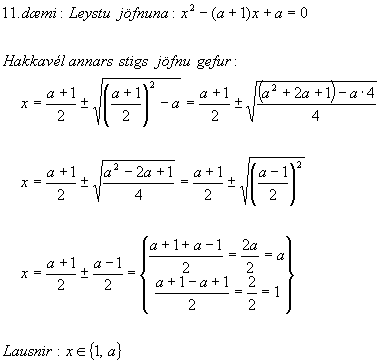 Lagfærð verður annars stigs jafnan: x2 = 36 þar sem nothæfa